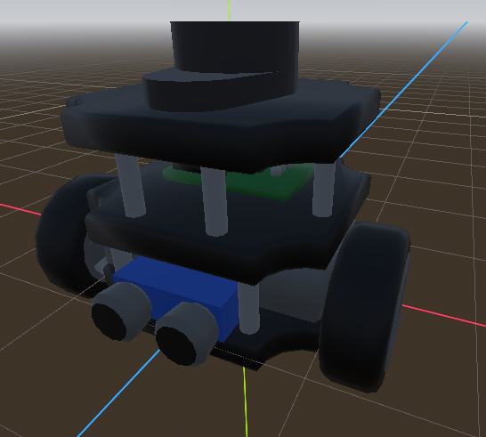 A friend modelled a “digital twin” of a turtlebot3, as the existing open source models usually used were very unoptimized and would hinder performance of actual training. It was purposefully minimal, but with accents to make it recognizable.