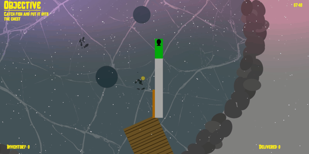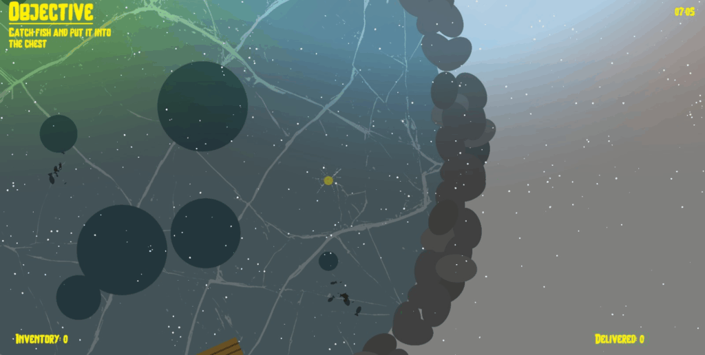 In this Weekend long game jam “PULS GAME JAM 2025“, we (a team of 3), have created a game in Unity. An engine that I have not used in a while and was kind of rusty. Nonetheless we have created a small cozy fishing game in which you are on a frozen lake that breaks over time.