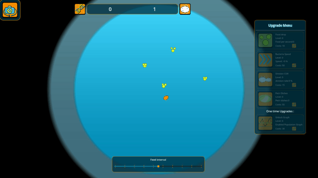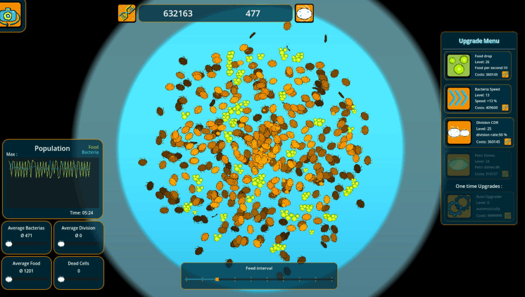 Bacteria Pilli is an incremental game where you have to manage how much food you put out to not overfeed the bacteria and cause them to die.